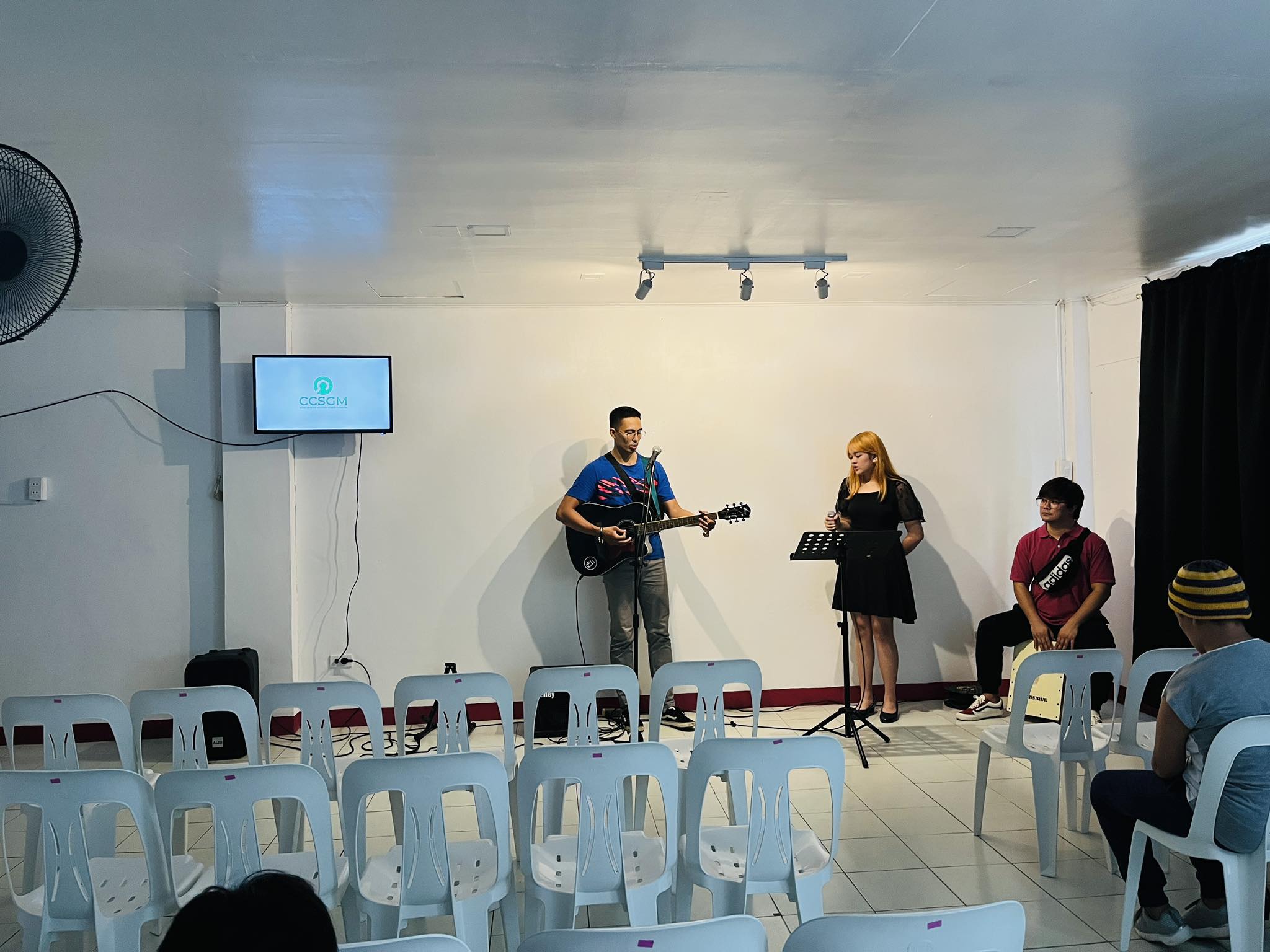 A few minutes before the worship service while waiting for the attendees, our worship team practiced the song lineup while we have Marshalls securing the place and Ushers who were waiting to greet the attendees.